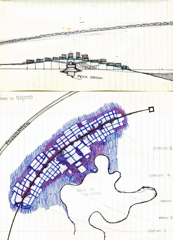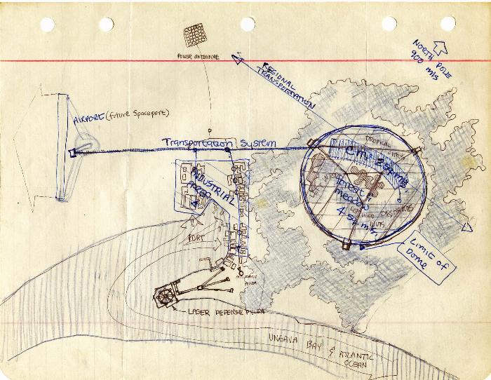 "Ungava Bay" domed city. Many of these sketches were done in the break room of a